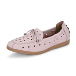 Bring a pop of soft color to your wardrobe with Valentino women’s loafers. Crafted from genuine leather in a stylish pink shade, these slip-ons feature breathable perforations, a chic lace detail, and a flexible TPR sole for lasting comfort. Perfect for casual wear, office styling, or weekend outings.