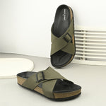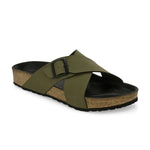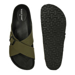West Port Men's Cushion Sliders | PU Padded Footbed | Bounce Back Technology | Lightweight Flip Flops for Everyday Comfort (M-Aero-19-Olive)