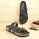 West Port Men's Cushion Sliders | PU Padded Footbed | Bounce Back Technology | Lightweight Flip Flops for Everyday Comfort (M-Aero-29-Black)