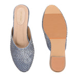 Step into understated glamour with these Westport embellished mules. Featuring a covered toe design and densely studded detailing, this pair combines traditional aesthetics with modern comfort. A lightly raised heel and padded footbed make them suitable for extended wear, whether it’s a festive gathering, casual outing, or a semi-formal event. Their versatile blue color and subtle sparkle make them an easy match for both ethnic and western wardrobes.