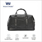 Upgrade your travel experience with the West Port Trendy & Classy Weekender Duffle Bag— a sleek, modern silhouette crafted for business trips or weekend getaways. The roomy central compartment keeps clothes and essentials organized, while superior grip handles and an adjustable shoulder strap ensure flexible carrying. Glide through airports with the travel-friendly trolley sleeve and keep your bag scuff-free thanks to sturdy bottom studs and a long-lasting zipper. Finished with signature West Port details and presented in a premium gift box, this bag is perfect for yourself or as a gift.