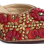 Women Ethnic Embellished Block Heel Mules (W-KI-07-MEHROON)