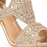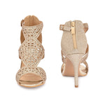 Women Golden Partywear Embellished Stiletto Sandals (W-KI-04-GOLD)