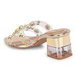 Women Transparent Gold Studded Block Heels (W-RST-121-GOLD)